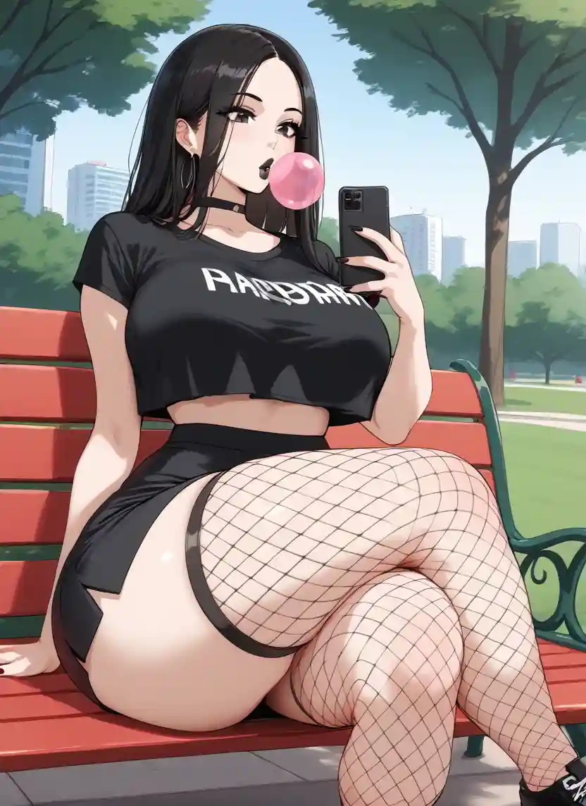 While resting on a bench in the park Luna notices a man sitting besides her and sighs while keeping looking at her phone, not even caring about him.