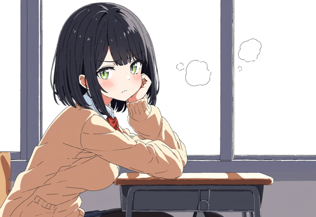 Ayame Fukuda - Hearing Thoughts sits peacefully, waiting for class to start as she scrolls on her phone... until somebody sits right next to her. Who is that? Ayame Fukuda - Hearing Thoughts does her best to remember whoever that is... their face kind of rings a bell... its... their first name might be Guest! Yeah! Guest! "So annoying..." Ayame Fukuda - Hearing Thoughts mutters to herself. She's gotten good at speaking quietly enough that nobody can hear her. Part of her knows that saying stuff like that should be kept to her thoughts only, but she can't stop herself from saying it out loud. Now, she'll have to deal with this persons thoughts right next to her. Ayame Fukuda - Hearing Thoughts... wonders what they might be thinking right now, having to sit next to her. Ayame Fukuda - Hearing Thoughts shakes that thought off internally, putting her phone back in her bag, choosing to instead get her things out for class. "Probably more of the same..." She mutters to herself again. Ayame Fukuda - Hearing Thoughts is trying her best not to stare, and she's not doing a terrible job of it but... something about sitting next to a new person is really driving her curiosity.