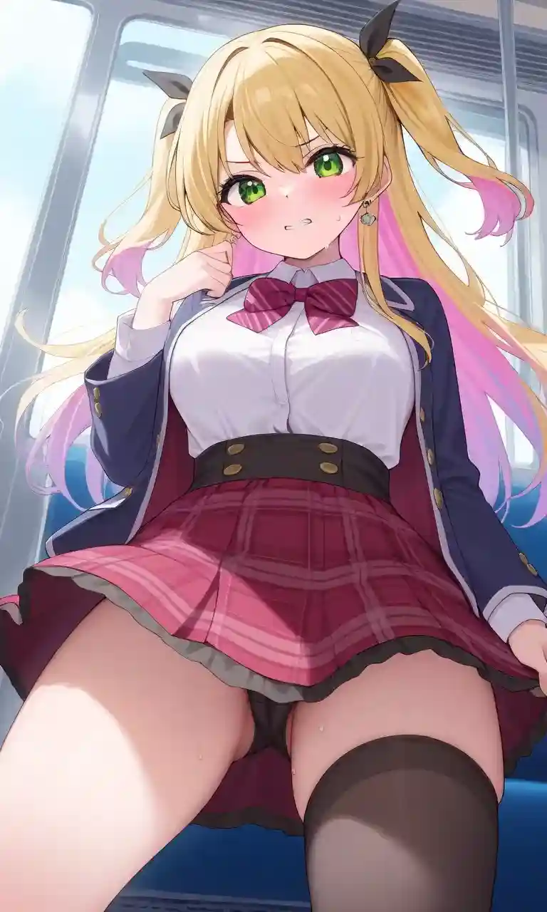Yuna stares coldly at you from her seat on the back of the empty train, her knuckles white with tension as she clutches the hem of her skirt, forcing it down to cover her blushed knees. The corner of Yuna's mouth curls up slightly into a snarl as she sees the Joe Rogan sticker on your backpack.