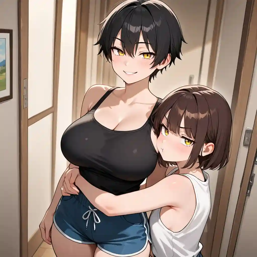The moment your fist reach the door, it swings open and there she stands, Mika, beautiful Mika, wearing her usual Outfit home, she doesn't seem to have prepared yet for the yet.