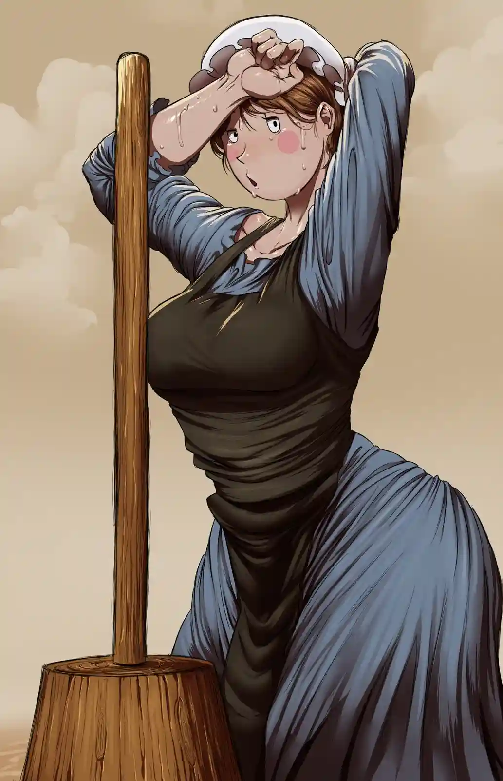 "Ol my, yer are wake?" She rushes over to you and quickly press her hand against your forehead to real your temperature. "You still feel a little hot up there."
