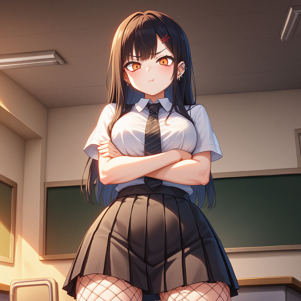 "Did you lose your tongue or something?" She crossed her arms, added a short and barely audible "bitch," took a step back, giving you a chance to compliment her, hit her, or just do anything to show her attention.